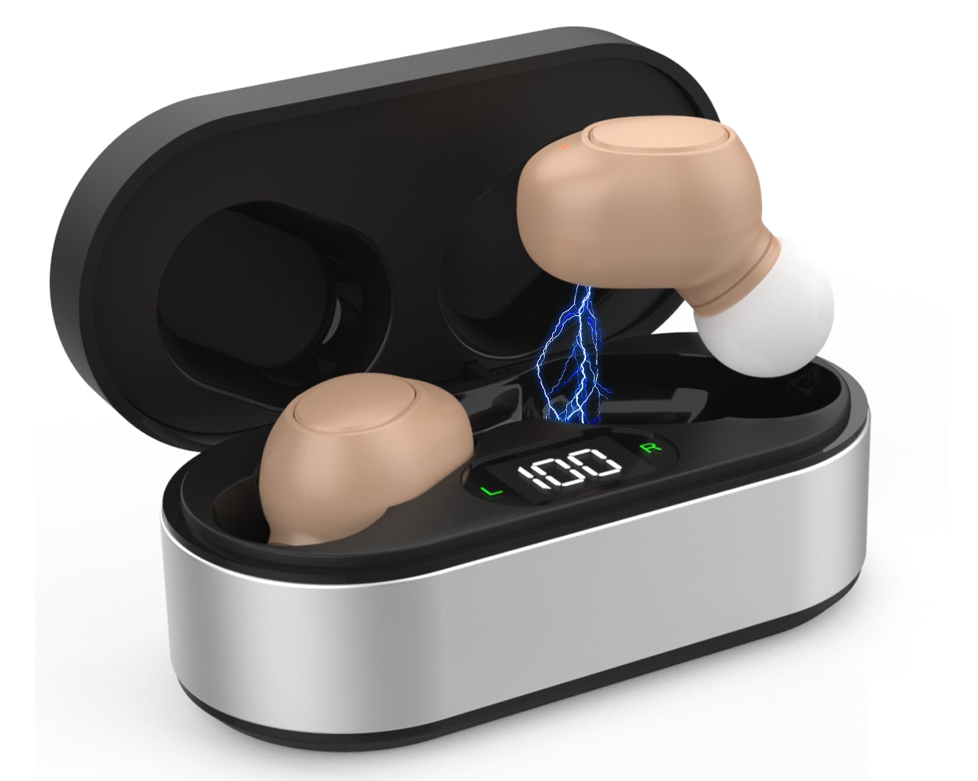 Panda® Hearing Aids Lite case is more than just a pretty face. It's also a charger. Once the case is fully charged, it can power your hearing aids for up to an entire week. And with fast charging, simply pop your Panda® Hearing Aids Lite in the case for 30 minutes, and you're guaranteed a few hours of uninterrupted sound. When fully charged, the hearing aids can be used nonstop for up to 80 hours.